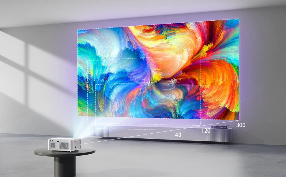 【 Enhanced electric Focus & 4P Correction 】: the 4K projector is equipped with a new electric Focus function, which allows to get clear images by simply pressing the remote control for a few seconds. With 4P correction, you can easily adjust the four corners of the image. In addition, automatic vertical trapezoidal correction of ± 40° can help you place the projector anywhere to easily get a clear square image